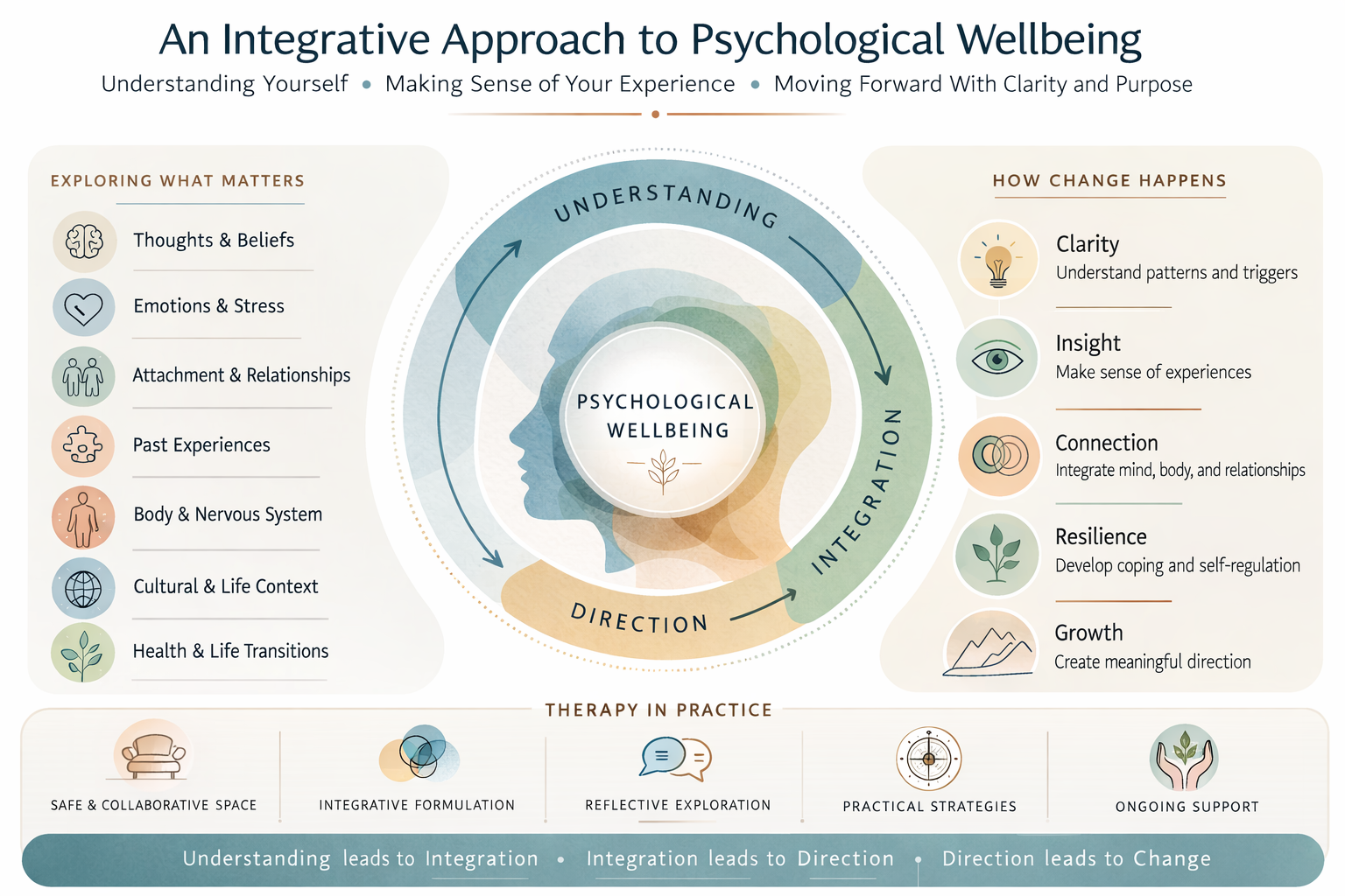 Integrative psychological therapy that helps individuals understand complex emotional patterns and move forward with clarity and practical direction.